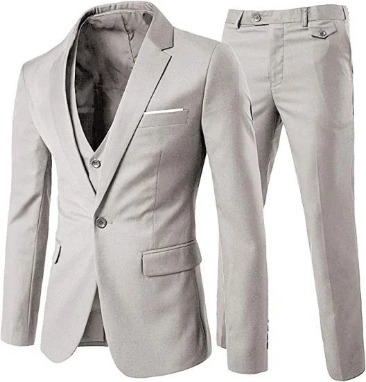 2. Traje de Tres Piezas: El traje de tres piezas añade un toque de sofisticación adicional al conjunto clásico de chaqueta y pantalón. Además de la chaqueta y los pantalones, incluye un chaleco a juego que completa el look. Este tipo de traje es ideal para eventos formales y ofrece una apariencia pulida y elegante.